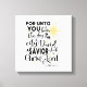For Unto You is Born This Day Christmas Black Gold Canvas Print