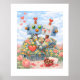 A romantic watercolor poster featuring a loving robot couple surrounded by blooming flowers and soft pastel skies.