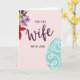 Designed with a soft blush pink background, this card sets a gentle, romantic tone right away. Centered in large deep plum lettering is the word “wife,” drawing the eye like a quiet, affectionate promise. Above it, “FOR YOU” sits in smaller, dark serif text, and below, “WITH LOVE” mirrors it in the same style, creating a tidy vertical layout. In the upper left corner, a small bouquet of painted flowers leans inward, with petals in lavender, sunny yellow, and deep crimson, plus muted green leaves that feel tender and close, like a shared moment 🌷. The watercolor shading keeps the edges soft, as if the blooms were brushed on with care for someone special. In the lower right, a large light teal egg shape is partly cropped off the edge, adding a festive Easter touch 🐰. Across the egg, thin white swirls loop and curl in delicate patterns over the pale teal wash.
