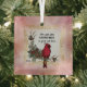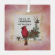 A gorgeous red Cardinal sitting on a pine bough and surrounded by a gold coloured square frame