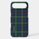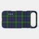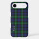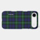 Handsome iPhone 7 case done in the green, blue, black, and white clan Forbes tartan plaid. Personalize the light grey text, running down the left side, for yourself or as a great gift idea. Stylish way to protect your electronic device.