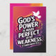 Découvrez la beauté de compter sur la force de Dieu avec cette carte d’affirmation dynamique et stimulante. Conçu pour inspirer espoir et foi, cette carte est un rappel parfait du pouvoir transformateur de Dieu dans nos vies. Front : déclare avec audace la vérité de 2 Corinthiens 12:9—"La puissance de Dieu est rendue parfaite dans ma faiblesse." Le design dynamique présente une colombe brillante et des gradients radieux de rose, d'orange et de violet, représentant la force divine qui nous élève dans nos moments de besoin. Retour : Affirme la promesse d'Ésaïe 40:31 avec les mots : "Je place mon espérance dans le Seigneur, et Il renouvelle ma force. Je volerai sur des ailes comme des aigles, je courrai et je ne me lasse pas, je marcherai et je ne serai pas faible." Complété par un dégradé rayonnant assorti de motifs arrière - plans et délicats d’aigle, ce design symbolise le renouveau, l’endurance et la confiance dans la puissance infinie de Dieu. Parfait pour : Encouragement personnel en temps de défis. Partager les promesses de Dieu avec un être cher. Inspiration quotidienne pour approfondir la foi et la confiance en Lui. Gardez cette carte comme un rappel quotidien de la force que Dieu fournit et de Sa puissance de vous soulever à travers chaque défi.
