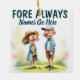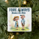 This charming and humourous illustration features an elderly couple enjoying a day on the golf course. The man and woman are dressed in casual golfing attire, complete with hats and golf clubs. The playful text "Fore Always" adds a whimsical touch, making this design perfect for golf lovers and those who appreciate a good laugh. The scene captures the joy and companionship of golfing together, making it an ideal choice for anyone who loves the sport or enjoys lighthearted, heartwarming artwork. This design is sure to bring a smile to the face of anyone who sees it, celebrating the timeless bond of shared hobbies, fun, Valentines Day, anniversary, holiday, birthday.