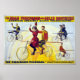 Restored and digitally enhanced vintage circus poster from 1900 showing circus performers riding bicycles on tightropes. Most imperfections removed. Colours corrected. Image courtesy of Library of Congress.