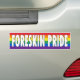 FORESKIN PRIDE sticker on a traditional pride flag background. Beautifully laid out black-outline white font against vibrant ROYGBIV.