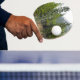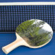 This paddle design features a photo of a forest scene with coniferous trees, along with a mountain in the background.