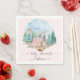 Coordinating paper napkins are part of the paper party decor products that match this invitation suite. Adorable watercolor artwork of mountains, forest trees and cute woodland animals with flowers in their hair and a dusty pink and grey tent on a glamping, camping trip! Script calligraphy typography text finishes off the design. Art painted by internationally licensed artist, Audrey Jeanne Roberts, copyright.