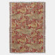 FOREST ANIMALS ,FOX, PEACOCK, HARE IN RED FLORAL THROW BLANKET