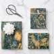 FOREST ANIMALS Pheasant,Fox,Lion,Hare,Green Floral Wrapping Paper Sheet