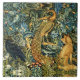 FOREST ANIMALS,RAVEN,FOX,PEACOCK Blue Green Floral Tile