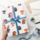 Forest Animals Woodland Creatures Gift Wrap orange fox raccoon squirrel and hedgehog.