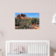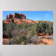 This is a low resolution image for the web, the poster you'll get has vibrant colour and sharp detail. A panoramic view of the forest and landscape at the base of the Cathedral Rock in Sedona, Arizona. Photography by Minerva Bloom.
