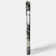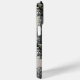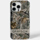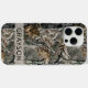 Customize this forest branches camouflage iPhone 15 pro max case with your name in a trendy modern CAP font in gray on opaque cream. It's masculine and perfect for your favorite military, hunting, country or outdoorsman!