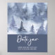 Rustic woodland Bridal Shower design with watercolor smoky winter forest and modern typography layout with elegant fonts. The text can easily be personalized for a unique one of a kind design for your special day