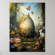 Great Easter Poster with a big easter egg and cute animals like an easter bunny or rabbit. Magical Fantasy Forest Floral Art with flowers and adorable animals. Forest Woods Egg.