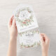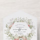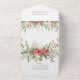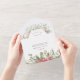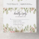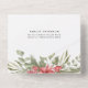 This delicate watercolor wedding invitation has traditional Christmas colours, olive green and cranberry red on bright white. The wedding wording is all centred inside a floral frame. All text can be edited to suit the needs of your event. Coordinates with other items from the Forest Foliage Wedding Collection. The bottom portion of this invitation is a tear-away RSVP card with the return address printed on the back.