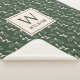 Custom-designed monogram blanket for the holiday season featuring rustic forest green and beige Christmas foliage design with personalized initial and name.