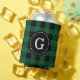 Forest Green Black Buffalo Check Plaid 1I Monogram Can Cooler