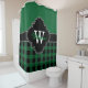 Forest Green and Black Buffalo Check Tartan Plaid with Colour Block, Name Initial Monogram on Black Quatrefoil with Ribbon