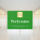 Forest green business logo welcome opening hours window cling