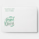 This fun and bold envelope is the perfect compliment to your Christmas cards. This design features a hand lettered "Joyful, Joyful" Christmas greeting in a forest, pine, emerald green colour palette. This design features an area for your return address, a greeting on the front and flap, and a scattered dot pattern on the inside. You can find the complimentary holiday photo card and gifts in my Zazzle store.