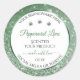 Make a lasting impression with this elegant and luxurious product label design featuring a sparkling forest green coloured glitter frame with luminous tiny stars.