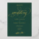 Set the tone for your celebration in style with this chic forest green and gold wedding invitation, featuring radiant gold foil lettering and gorgeous script calligraphy. Designed for timeless elegance, this invitation beautifully highlights your names, wedding date, and venue location in luxurious foil. Ideal for black-tie weddings, elegant soirées, or classic romantic ceremonies, this invitation is designed to make a grand entrance.