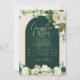 Forest Green Gold White Roses Winter Wedding Invitation