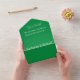 Forest green modern all-in-one wedding invitation, perfect for summer or garden weddings with clean aesthetics.