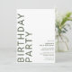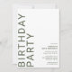 Modern and sleek birthday party invitations with dark green accents on a white background. Can be changed to suit any age.