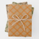 Forest Green Orange Tartan Faux Rustic Brown Kraft Wrapping Paper Sheet