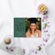 Celebrate your graduation in style with this modern graduation announcement and invitation. It features the word GRAD in a stylish sans serif pressed with foil on the front on a forest green background, along with space for a photo. The back of the invitation has space for a second photo as well as room for all of the details of your graduation party.