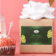 Make a lasting impression with this elegant and exotic product label design featuring cute yellow hawaiian flowers and green palm leaves on a forest green background. A cool palm leaf shadow matching to the shimmery border frame.