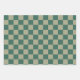 One wrapping sheet has a chequerboard pattern. The forest green wrapping sheet is a solid colour. The sage wrapping sheet is also a solid colour.