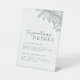 This elegant drinks pedestal sign features a beautiful forest green botanical design, perfect for adding a touch of nature to your event. Its simple yet sophisticated look makes it ideal for weddings, parties, or any gathering where you want to impress your guests. Made from high-quality materials, this sign is both durable and stylish, ensuring it will stand out while providing clear information about your drink offerings. Enhance your decor with this charming and functional piece that complements any theme.