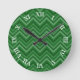 Forest Green Zig Zag Pattern with Editable Numbers Round Clock