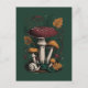 A beautiful, vintage-style botanical illustration featuring a majestic fly agaric mushroom, a snail, and autumn leaves on a dark background. Perfect for nature and forest lovers.