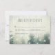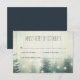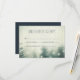 Rustic wedding RSVP with spruce trees decorated with fairy lights.