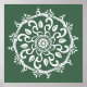 This white mandala sits on a forest green background. The colours are peaceful. Part of the Payon Mandala Collection.