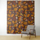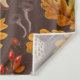 Forest mushrooms and autumn flora on brown tapestry