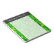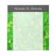 This notepad design features an abstract pattern of many triangle shapes coloured various shades of green. It could perhaps be said to resemble a dense forest of coniferous trees. It also features a personalized name at the top.