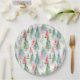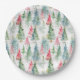 Forest, Red Green Pine Trees Holiday Paper Plate