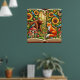 A vibrant and imaginative illustration featuring a bear, fox, sunflowers, mushrooms, and birds inside an open book, embracing a magical and nature-rich storytelling vibe.