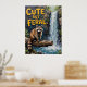 This captivating painting presents a raccoon, a "Forest Sentinel," perched on a log next to a waterfall, looking out with an inquisitive gaze. The scene is set in a vibrant forest with a powerful waterfall and a rushing stream below. The text "Cute but but feral" is painted on the rustic wooden background, adding a touch of personality to the piece. The thick, textured brushstrokes add a rugged yet charming feel to this woodland portrait.