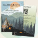 Outdoors bachelorette weekend itinerary invitation featuring a forest scene with tent and campfire. Beautiful if you plan a camping or glamping event or a spa retreat in the mountains. On the back is a QR code template to add your custom website link.