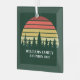 Cool customizable family reunion keepsake Christmas ornaments in green for the whole group on a nature outing or camping trip. These custom commemorative vacation gifts feature a beautiful vintage sunset over a forest of pretty trees under your personalized text. Great ornament for a log cabin.