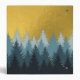 A beautiful design showcasing trees in a forest and a golden sky. Color tones include neutral blue tones and gold. A rustic design ideal for Autumn, Fall, Winter home decor and the festive holiday season.