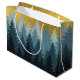 A beautiful design showcasing trees in a forest and a golden sky. Colour tones include neutral blue tones and gold. A rustic design ideal for Autumn, Fall, Winter home decor and the festive holiday season.