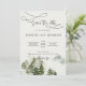 Capture the beauty of nature with this stunning invitation, featuring a serene forest with majestic mountains in the background, adorned with soft clouds. The design is a perfect blend of modern minimalism and elegant handwritten calligraphy on the "save the date" text. The nature watercolor illustration adds a touch of artistry to the invitation, creating a truly unique and memorable piece. With its captivating romantic wedding celebration. Embrace the beauty of nature and begin your journey of love with this exquisite invitation