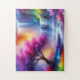 Contemporary Trendy AI Generated Colourful Abstract Art Modern Purple Blue Red Yellow Green Forest Waterfall Landscape Oil Painting Horizontal Puzzle.
